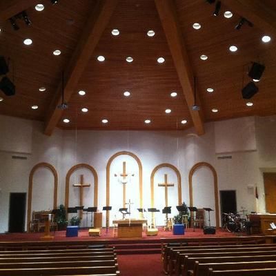 The contemporary service at 11:00 is a high-energy experience led by a worship band. It features the same Scripture, sermon and prayers as the first service but uses more video and band music for a more immersive worship experience.